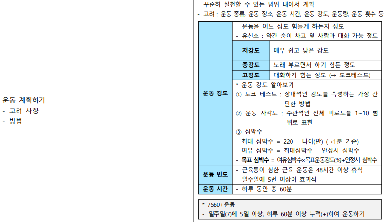 운동 강도 알아보기 방법인 토크테스트나 운동자각도, 심박수는 56학년에 나와있더라구요.