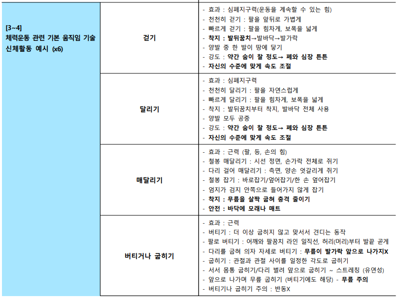 운동 영역의 경우 신체활동 예시가 바로 계열성 있게 연결되지 않는 부분이 좀 있어서