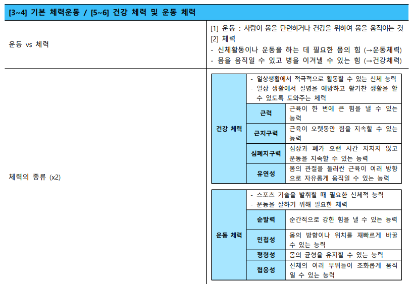 먼저 [3,4 기본체력운동]과 [5,6 건강 체력 및 운동 체력]은 겹치는 부분이 정말 많아서